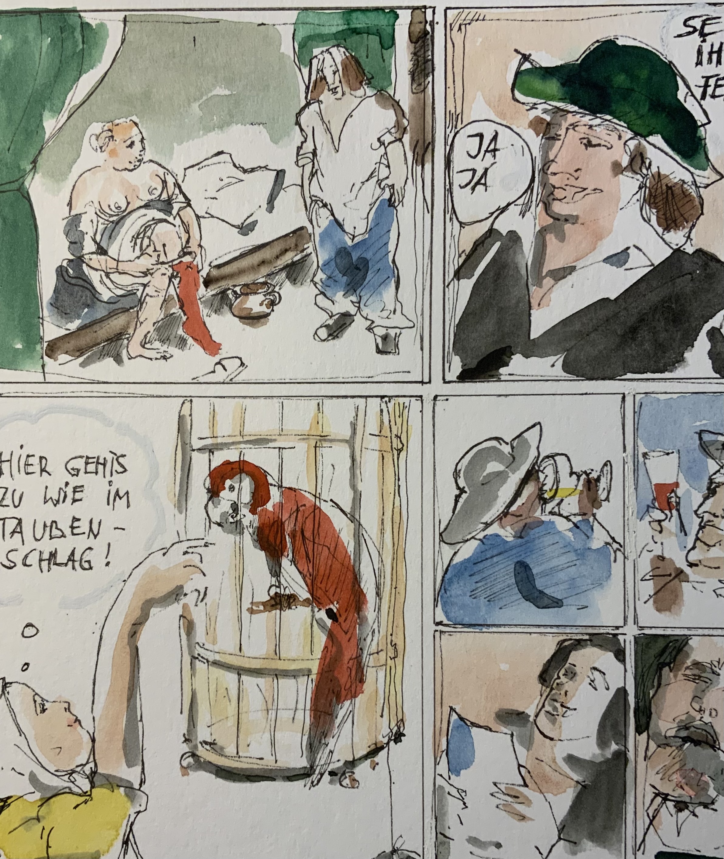 Abb. Axel von Criegern, Entwurf zu einem (unveröffentlichten) Comic. 17 Seiten in Axel von Criegern :Dramaturgie eines Bildes, Tübingen, Giessen 2004